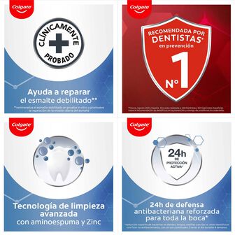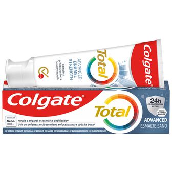 A Pasta de Dentes Advanced cuida do seu esmalte. Ajuda não só a reparar o esmalte enfraquecido mas também fortalece as defesas naturais da boca e oferece proteção antibacteriana 24 horas.