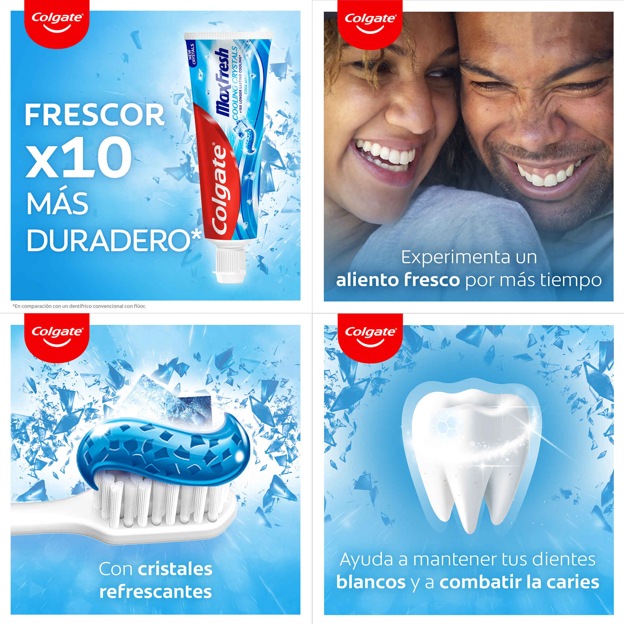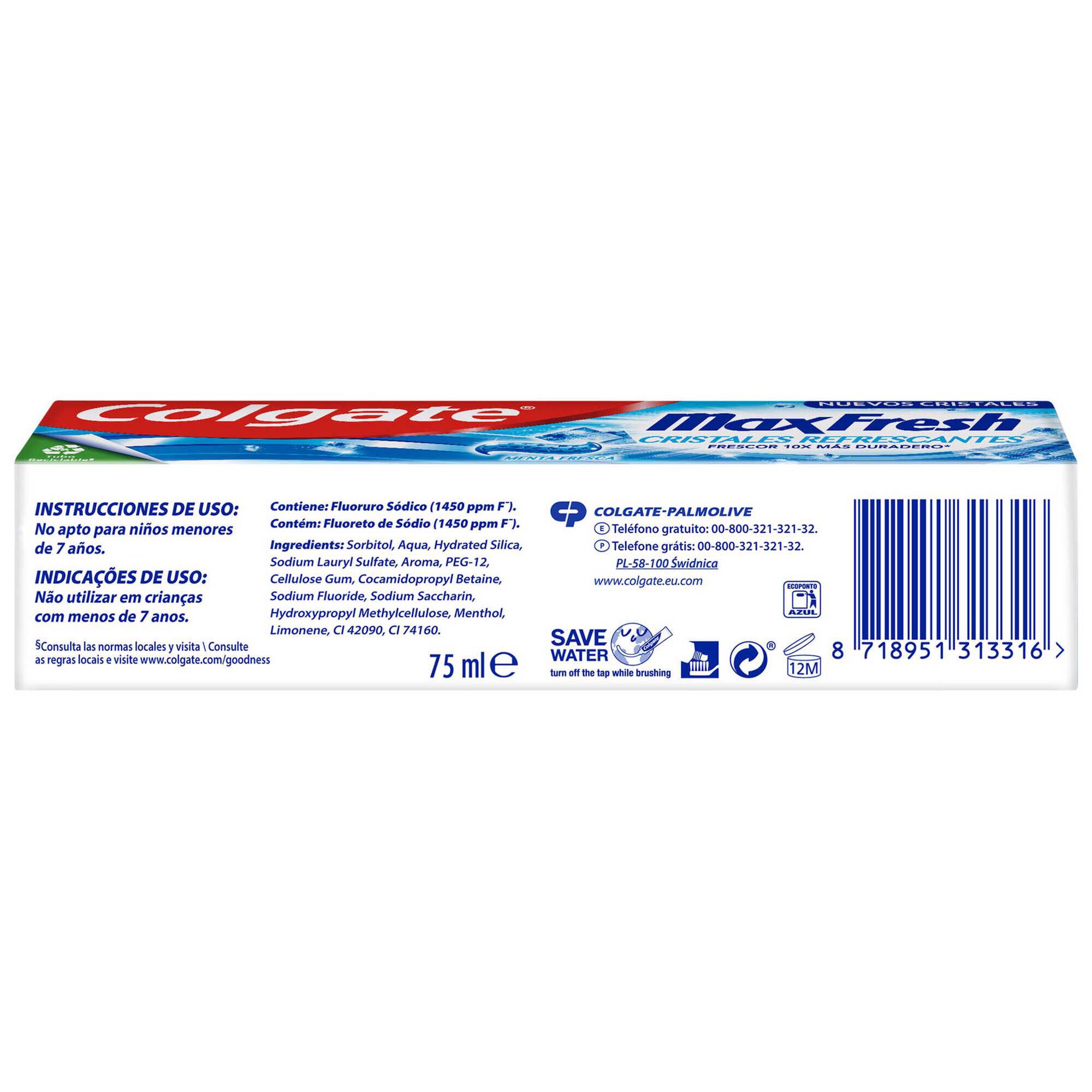 A Pasta Colgate Max Fresh Refreshing Crystals é um creme dental que ajuda a melhorar a imagem e a aparência dos dentes, atua em profundidade eliminando as bactérias.