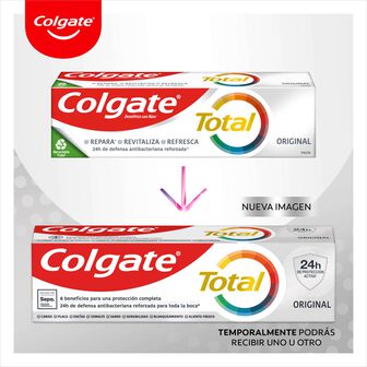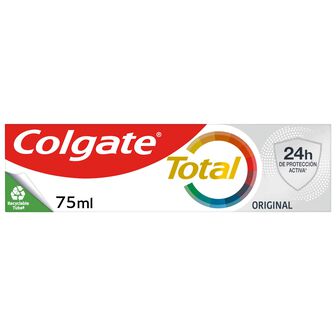 A Pasta Dentífrica Proteção Total Original da Colgate, formulada com zinco duplo, arginina e flúor fornece uma proteção antibacteriana durante 24 horas.