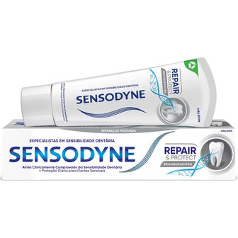 Sensodyne Repair & Protect proporciona um alívio eficaz e duradouro da dor da sensibilidade, ao mesmo tempo que ajuda a devolver aos dentes o seu branco natural.