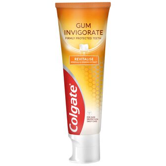 A Pasta Dentífrica Revitalizante Gengivas da Colgate contém minerais e extrato de ginseng, que reduz as bactérias na linha da gengiva para fortalecer progressivamente as gengivas e aumentar sua resistência.
