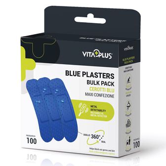 Pensos azuis com detetabilidade de metal, para utilização em ambiente de restauração, hospitalidade e/ou agricultura. Contém uma camada metálica que o torna detetável.