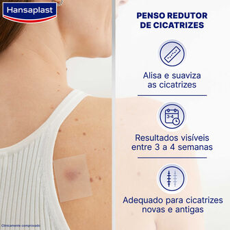 Aplicar diariamente o penso redutor de cicatrizes sob a cicatriz, deixando-o permanecer durante no mínimo 12h por dia.