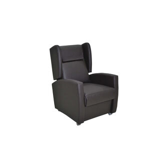 Encosto reclinável com levanta pés, exercendo alguma pressão na costas e apoios de braços.