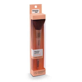 Pincel de rosto com cerdas macias. Ideal para aplicar facilmente e de forma uniforme todo o tipo de maquilhagem em pó.