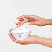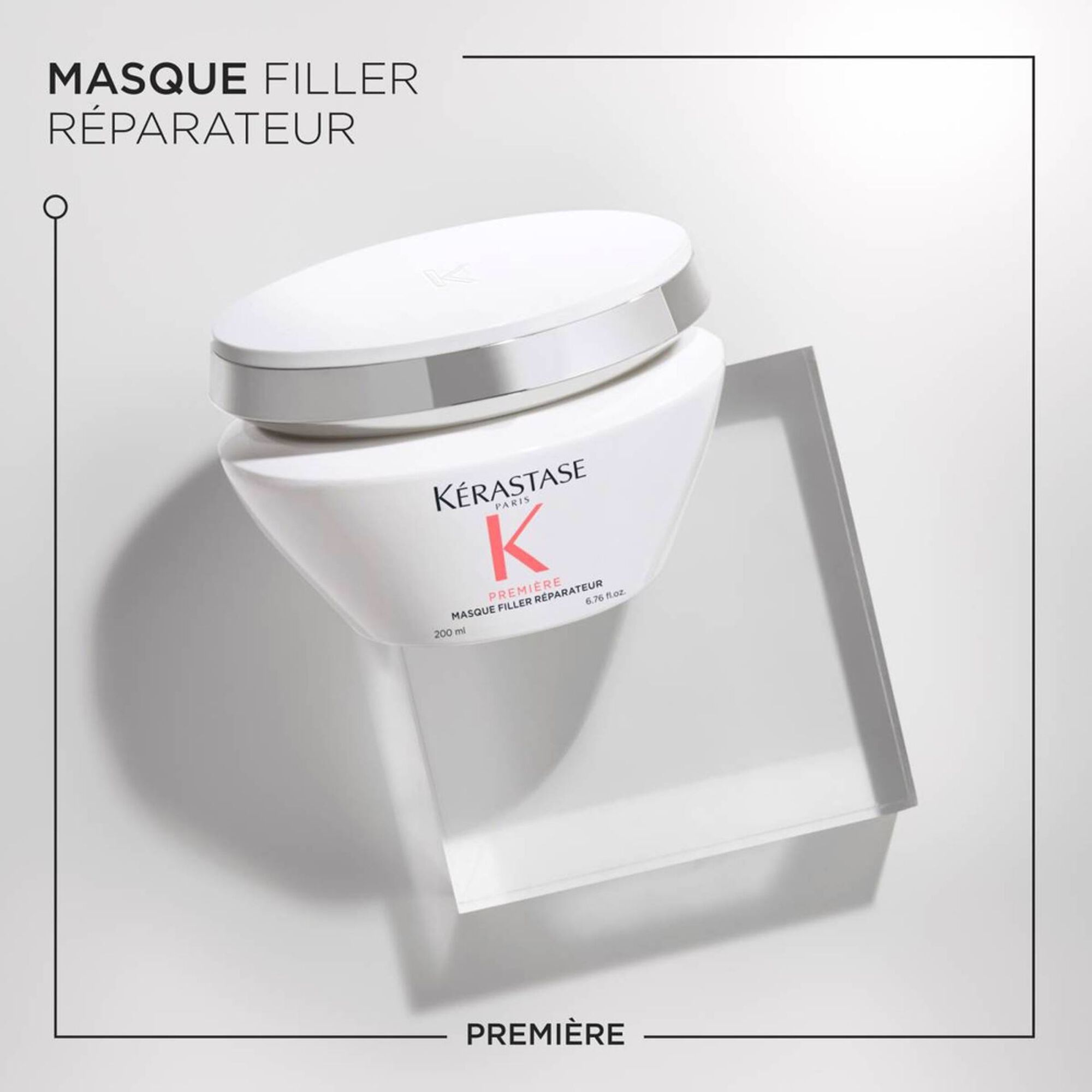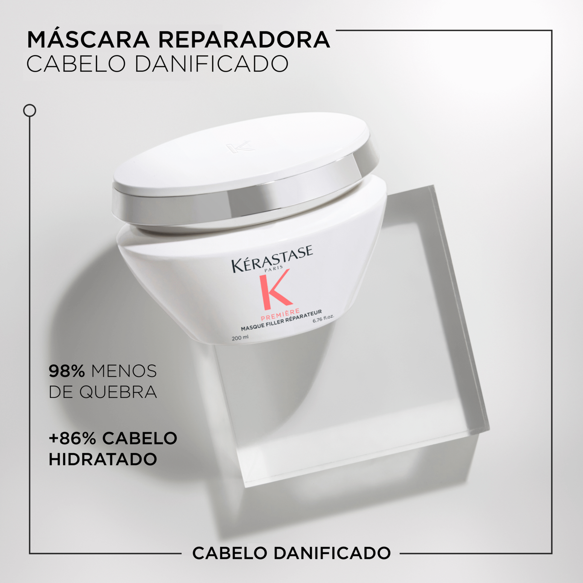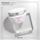 A máscara Kérastase Masque Filler Réparateur, é uma máscara reparadora antiquebra para cabelos danificados, com resultados comprovados. Proporciona um cabelo mais forte, com menos pontas duplas, menos danos na superfície e um aumento de 53% de brilho.