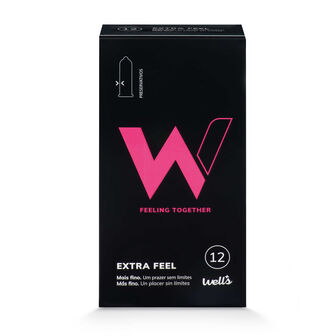 Preservativos W Extra Feel Wells são finos, lisos, transparente e com depósito. Lubrificados sem espermicida.