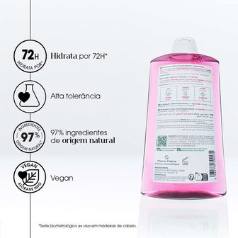Este champô hidratante de longa duração cria uma espuma delicada e altamente sensorial. Formulado com 97% de ingredientes de origem natural, este champô com Figo da índia possui propriedades hidratantes superiores às da glicerina.