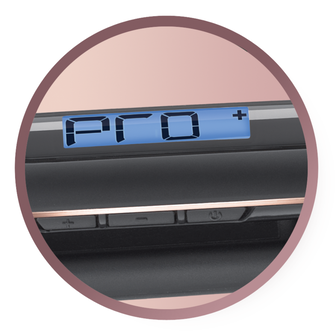 O revestimento de cerâmica avançada oferece um deslizamento 5 vezes mais suave comparado com o revestimento cerâmico convencional. O visor digital integrado permite selecionar entre 6 posições de temperatura até 230 ºC, incluindo a posição Pro+, que modela suavemente o cabelo a 185 ºC para um acabamento mais saudável.