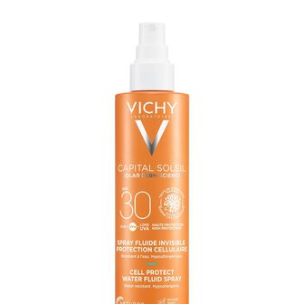 O Spray Solar Capital Soleil Anti Desidratação SPF30, da Vichy, é um protetor solar para corpo e rosto. Protege ativamente a pele sensível dos efeitos nocivos do sol: queimaduras solares e envelhecimento da pele.