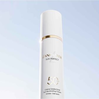 A fórmula evoluída do Sun Perfect Sun Illuminating Cream SPF50 apresenta a avançada tecnologia Full Light exclusiva da Lancaster, que atua contra 100% do espectro solar*, juntamente com a tecnologia de antienvelhecimento, sistema de reparação solar de origem natural e complexo de aumento de luminosidade.