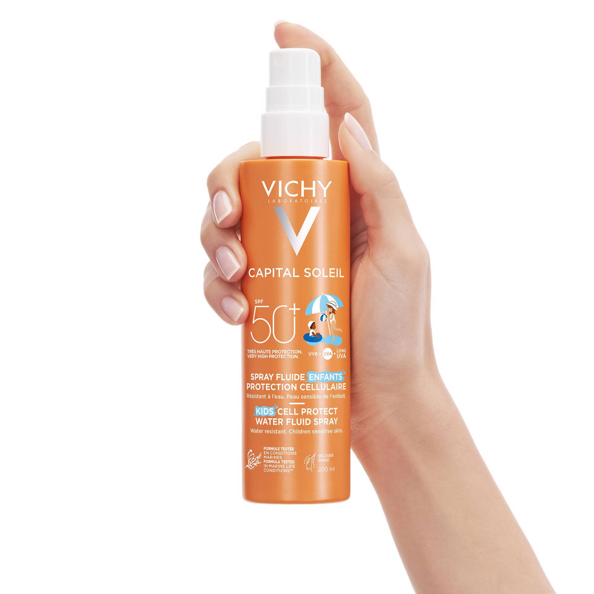 O Protetor Solar Vichy Idéal Soleil Spray para Crianças SPF 50+ protege contra raios solares.