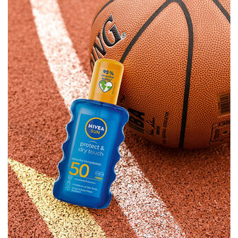 O Spray Protect & Dry Touch FP50 oferece proteção imediata contra queimaduras solares. É de fácil aplicação, é transparente em todos os tons de pele e extra resistente à água e suor. O Nivea Sun Protect e Dry Touch Spray PF50 proporciona uma proteção UV imediata.