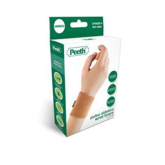 Pulso elástico feito de algodão para suporte do pulso com compressão ajustável. Tamanho médio. Indicado para entorses, lesões por esforço repetitivo, lesões nos tendões ou em traumatismos do pulso. É ainda recomendado na prevenção de distensões musculares pois limitam o movimento protegendo o pulso. Dispositivo Médico.