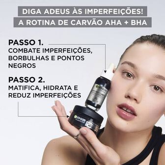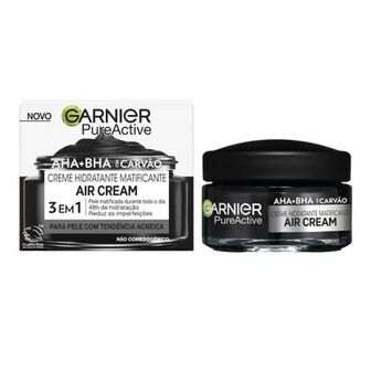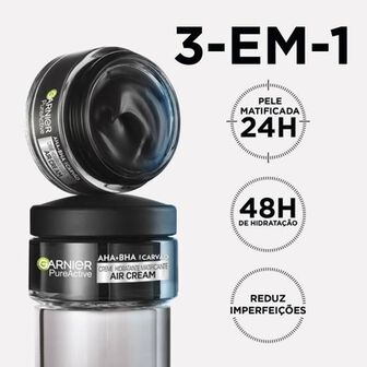 O creme hidratante matificante Garnier Pure Active com AHA + BHA + Carvão, para pele com tendência acneica. Este creme em gel, desenhado para uso diário, é enriquecido com uma poderosa combinação de Niacinamida, AHA e BHA, que reduz imperfeições e purifica a pele. Pele matificada durante todo o dia e 48 horas de hidratação.
