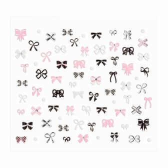 Laços brancos, pretos, prateados e rosa claro, incluindo elementos de pedras preciosas e pérolas, tornam a sua manicure ainda mais especial. Podem ser aplicados diretamente nas unhas ou no verniz seco.