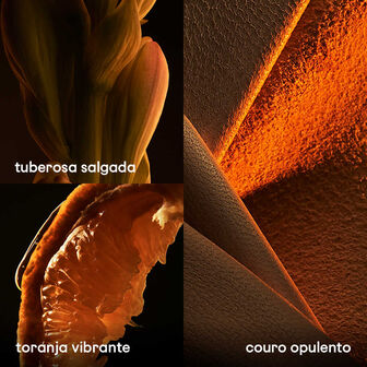 A fragrância desafia os efeitos da matéria e brinca com as sensações. Uma dualidade entre o pulso salgado e a opulência do couro solar. Uma fragrância com o calor do âmbar que provoca uma sensualidade exacerbada. Como pele quente ao sol.