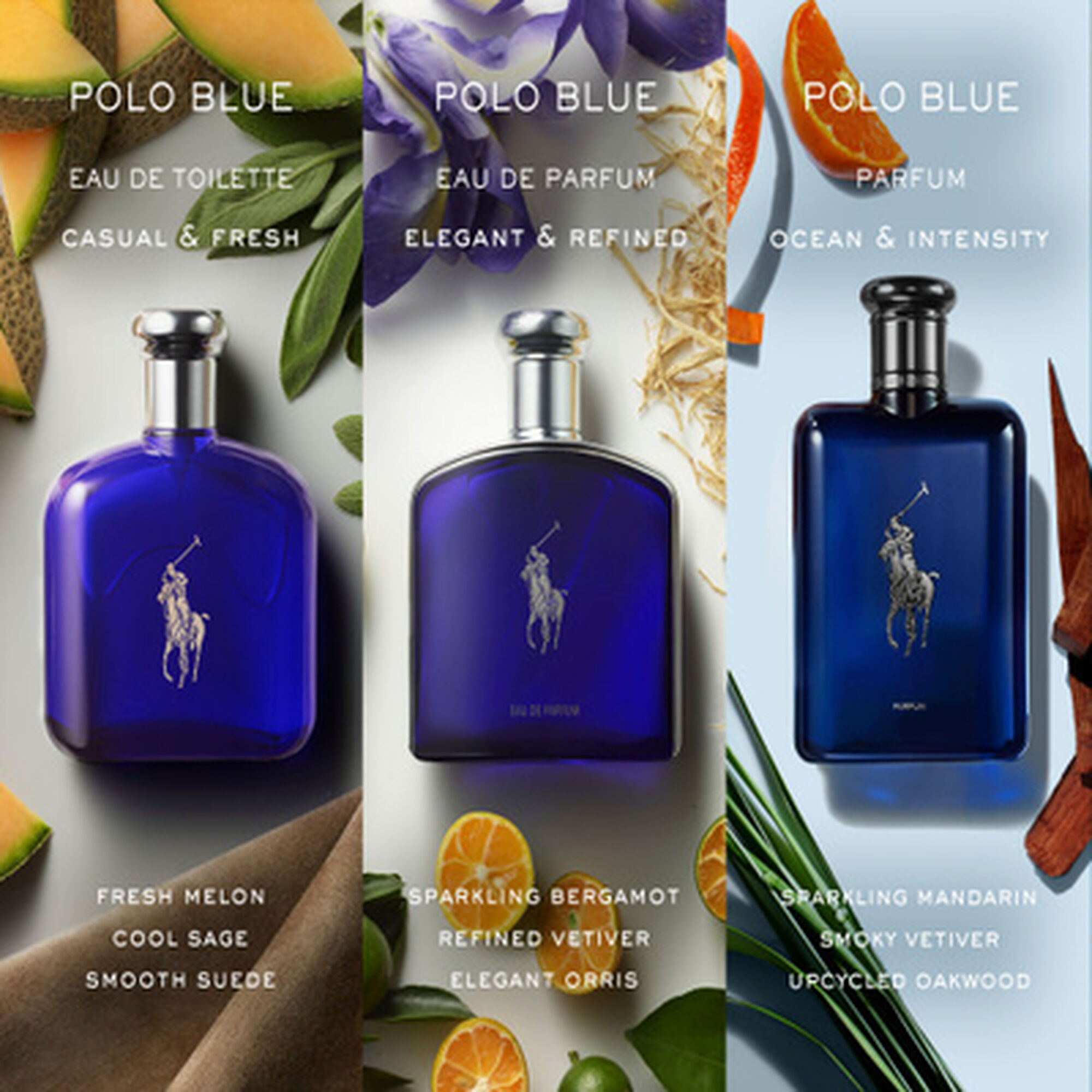 As notas olfativas de Polo Blue Parfum convidam a uma viagem inesquecível. Nas suas notas de saída, a tangerina confere um aroma cintilante, enquanto que a sálvia no seu coração, proporciona frescura à fragrância e o vétiver um efeito suave e fumado. Para concluir, a madeira de carvalho reciclada oferece um acorde amadeirado enolvente e sedutor.