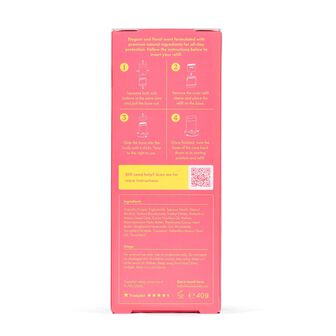 Aplicar duas vezes nas axilas secas. Somente para uso externo e não aplicar em pele irritada. Evitar o contacto com os olhos e mucosas. Para substituição da recarga, basta girar a caixa até ao início e apertar os botões laterais para desmontar.