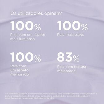 Creme facial formulado com 8% de ácido glicólico parcialmente neutralizado (equivalente a 3,2% de ácido glicólico livre) que esfolia a superfície da pele, ajudando a suavizar a sua textura e a estimular o processo de renovação cutânea.