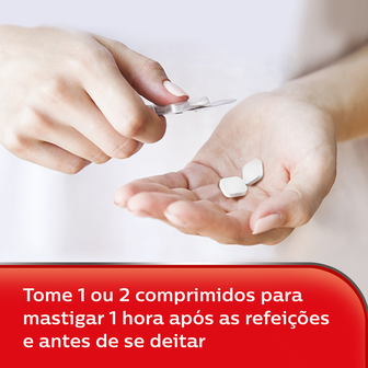 Mastigar ou chupar 1 ou 2 comprimidos, de preferência 1 hora após a refeição e antes de deitar. Pode também ser tomado entre as refeições em caso de azia e dor no estômago.
