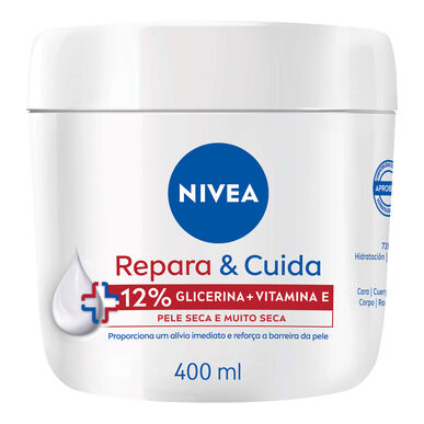 Este creme é enriquecido com pantenol e glicerina, que são conhecidos pelas suas propriedades hidratantes intensas. Experimente o poder reparador do NIVEA Creme Repara & Cuida para uma pele visivelmente mais suave.