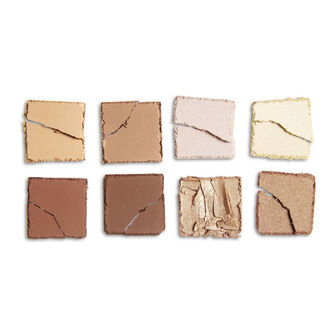 Paleta de iluminadores e pós de contorno com quatro belos iluminadores e quatro pós de contorno.