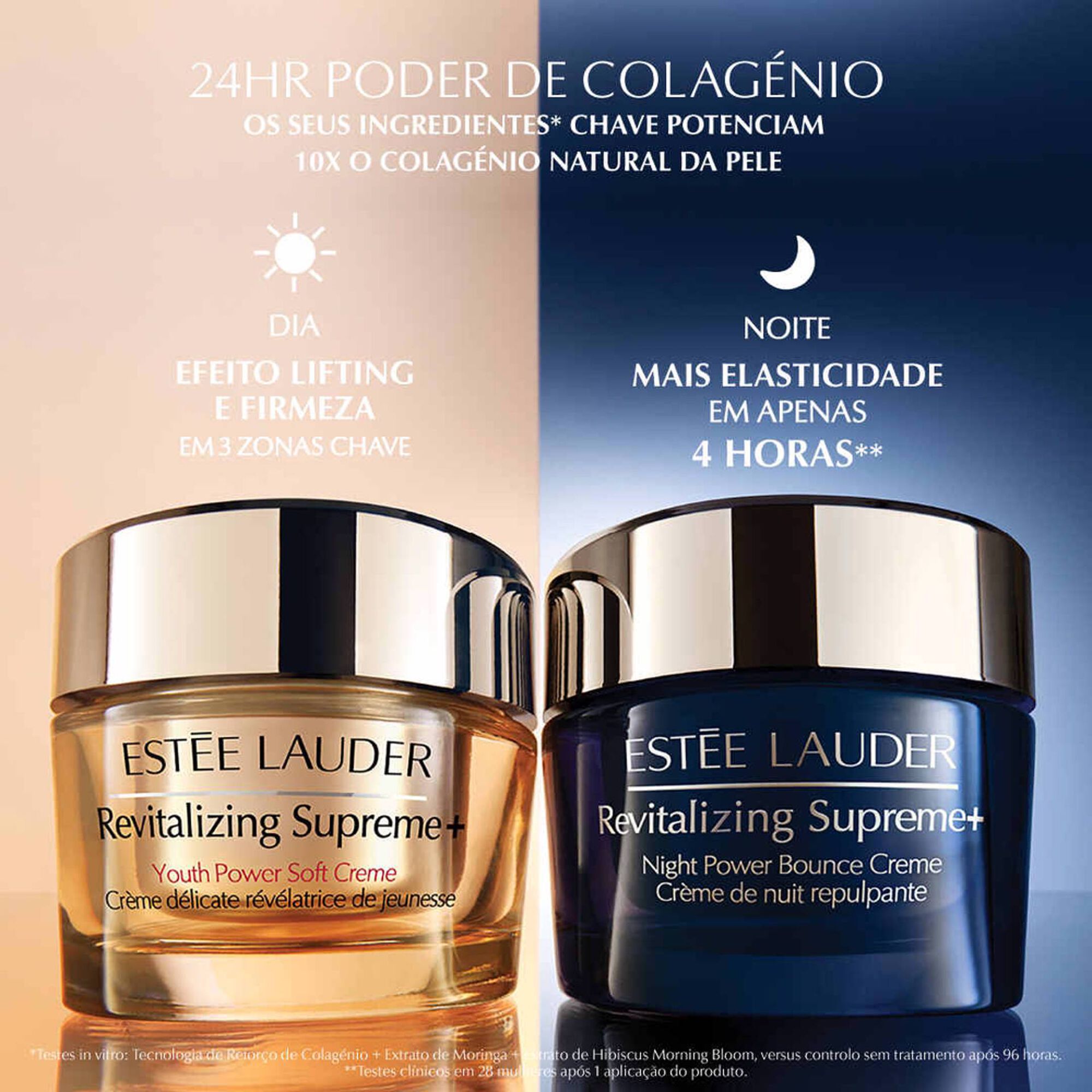 Night Power Bounce Creme mantém a pele com uma sensação de firmeza e elasticidade, e com uma aparência mais jovem e suave, através da exclusiva tecnologia CollaNight-8™. Esta super combinação para o Poder do Colagénio Noturno inclui oito ingredientes poderosos: o nosso exclusivo Extrato de Moringa, o nosso exclusivo Extrato de Hibiscus Morning Bloom, uma infusão tripla da nossa Tecnologia de Reforço de Colagénio, Extrato de Algas concentrado, Extrato de Sigesbeckia e Vitamina E.