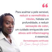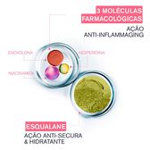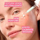 Os principais ingredientes dermatológicos são formulados num sérum fresco e calmante com uma textura verde que neutraliza a vermelhidão.