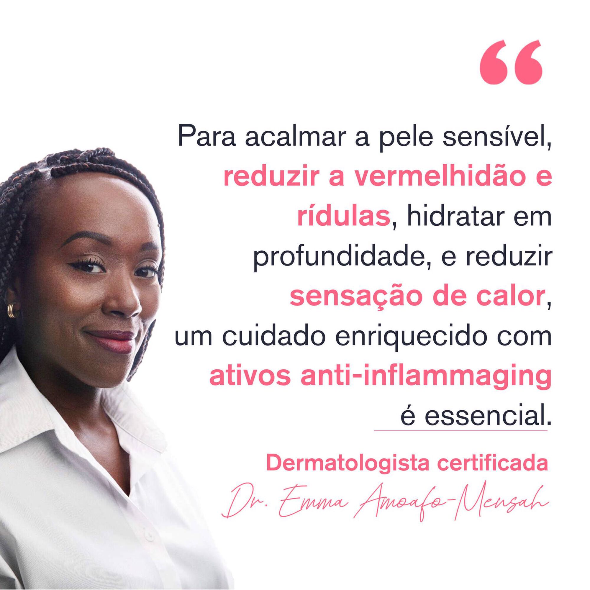 Este Sérum também antienvelhecimento ajuda a prevenir o envelhecimento prematuro da pele sensível graças a 3 moléculas farmacológicas: hesperidina, enoxolona e niacinamida. 2X menos vermelhidão, rídulas e sensações de calor.
