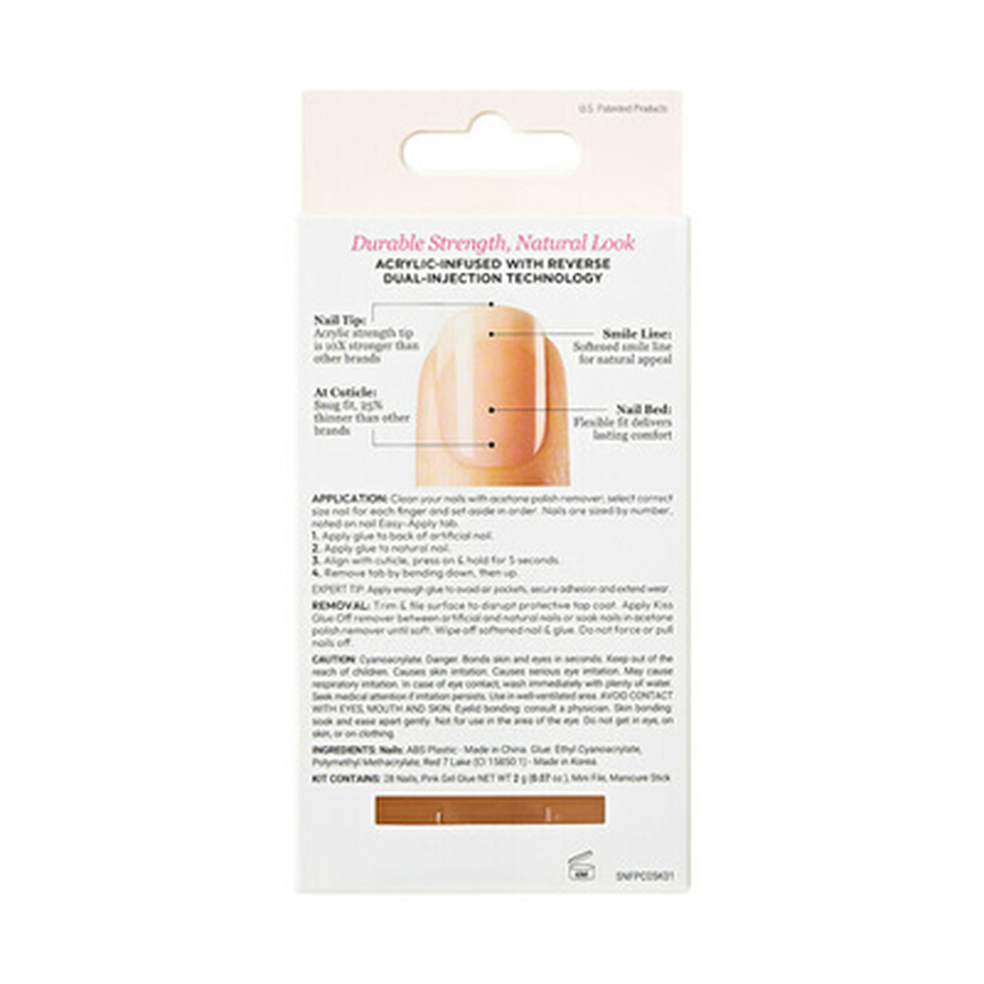 Criadas com tecnologia de infusão de acrílico, as unhas Salon Acrylic são fortes como os acrílicos de salão, mas têm um acabamento sem bolhas e sem falhas e são mais finas na cutícula para um aspeto perfeito.