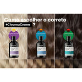 Enriquecido com pigmentos verdes, esta fórmula cremosa neutraliza instantaneamente os tons avermelhados indesejados e nutre a fibra sem pesar. O cabelo fica suave e a cor renovada e brilhante.