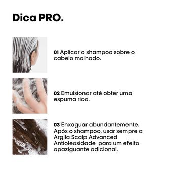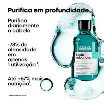 CUIDADO ANTIOLEOSIDADE: O Champoo antioleosidade Scalp Advanced contém uma fórmula específica para o couro cabeludo oleoso. Este Shampoo delicado purifica o couro cabeludo e a fibra de resíduos, suor e oleosidade para uma sensação mais fresca e limpa.