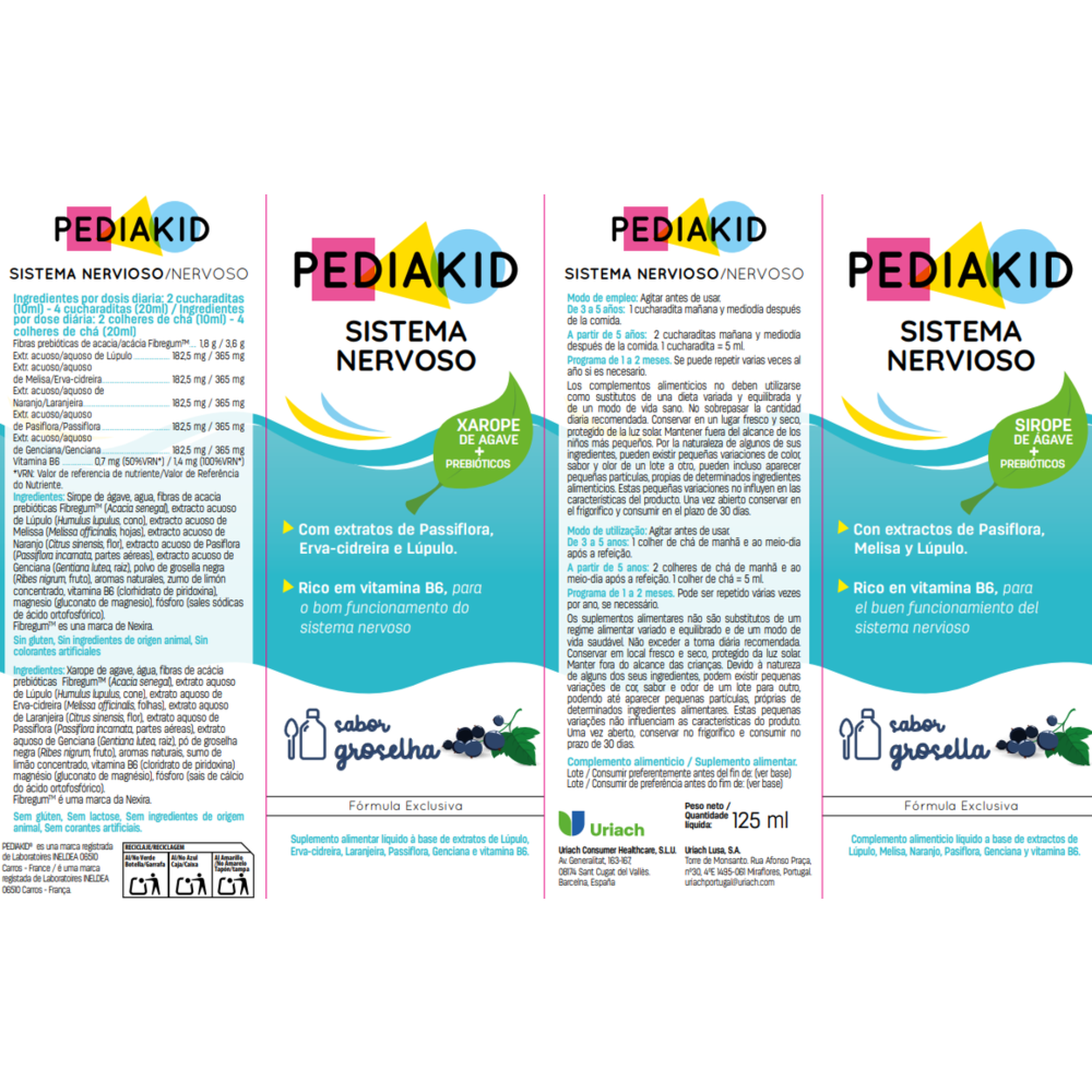 Pediakid Sistema Nervoso é um suplemento alimentar líquido à base de extratos de Lúpulo, Erva-cidreira, Laranjeira, Passiflora, Genciana e vitamina B6.