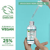 O sérum Hyaluron+, de Garnier, repara a barreira cutânea graças à sua fórmula enriquecida com 4% de Glicerina, Pantenol, Ácido Hialurónico, Esqualeno e Aloe Vera.