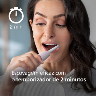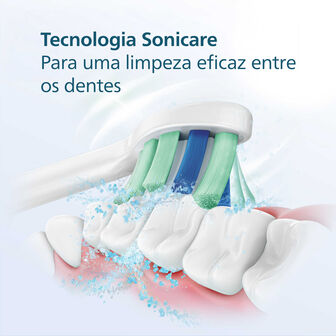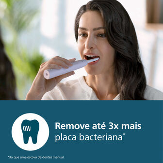Este modelo conta com um modo de limpeza e um nível de intensidade, garantindo uma escovagem suave, porém eficaz. A tecnologia da Philips Sonicare ajuda a remover mais placa bacteriana do que uma escova manual comum, promovendo uma limpeza profunda e delicada para dentes e gengivas.