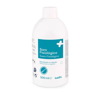 Soro Fisiológico em formato de 500 ml com adaptador para utilização com seringas.