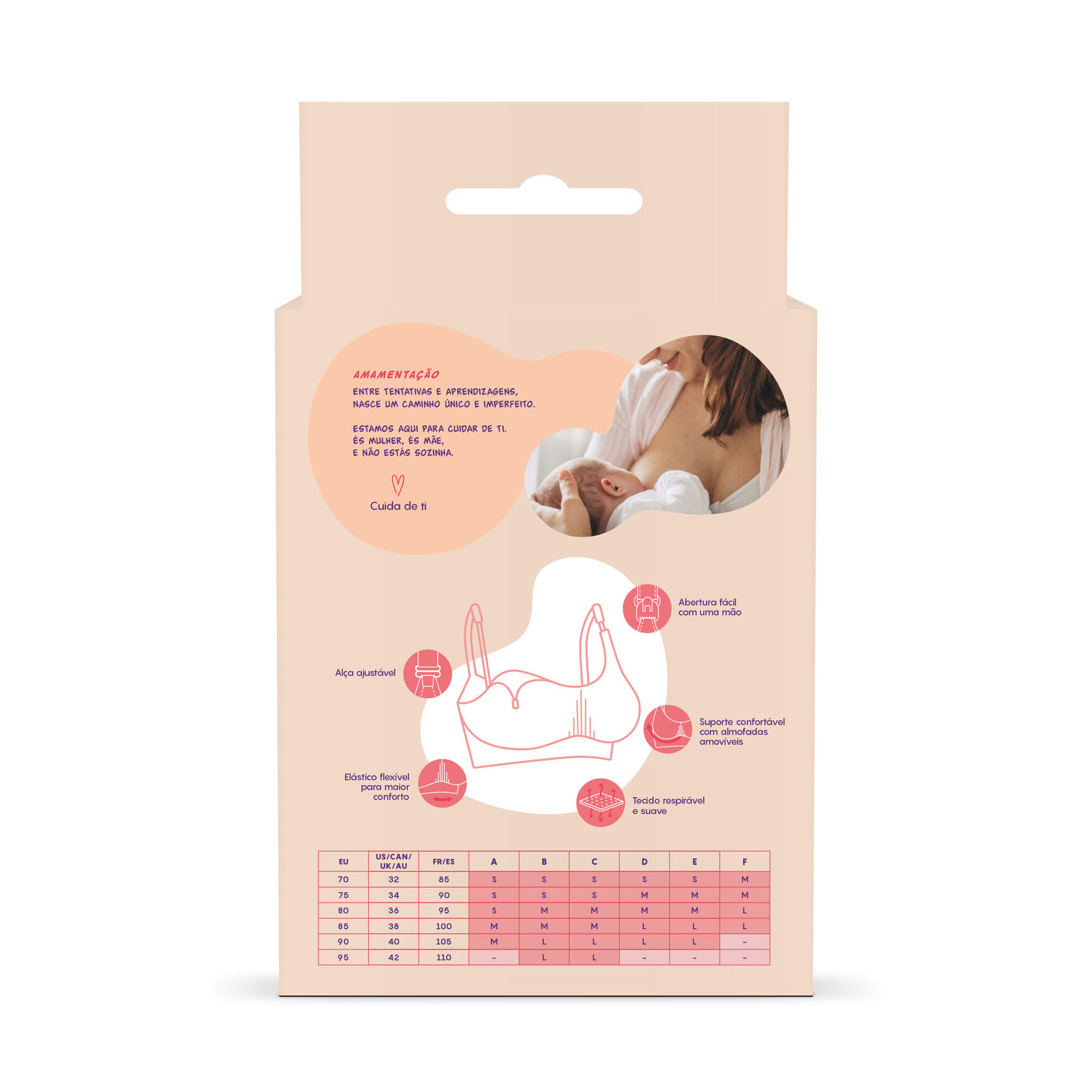 Com almofadas amovíveis e alças ajustáveis, a utilização deste soutien possibilita uma melhor sustentação e modelação dos seios.
