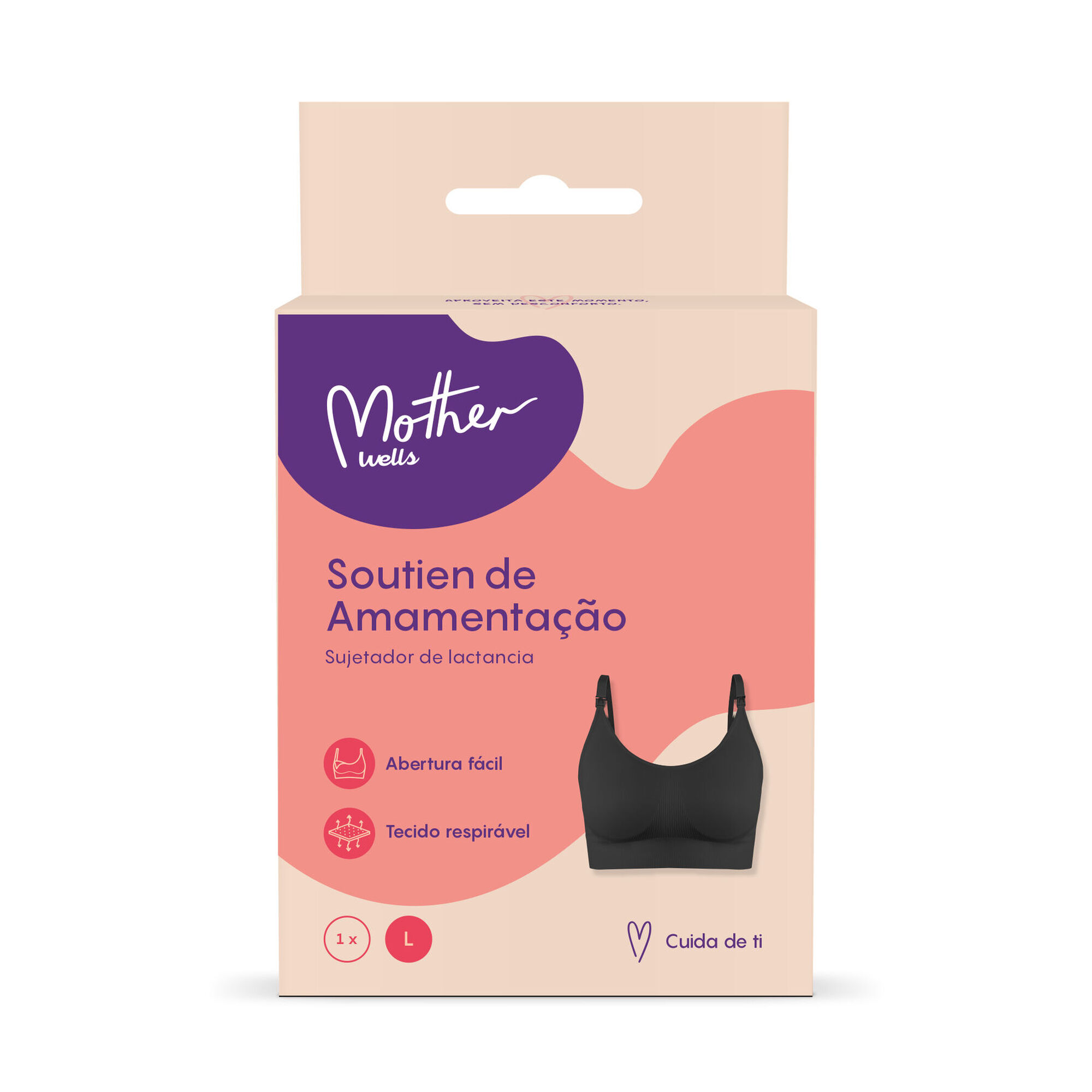 O Soutien de Amamentação Preto, com copas de abertura fácil com uma mão, é ideal durante o aleitamento.