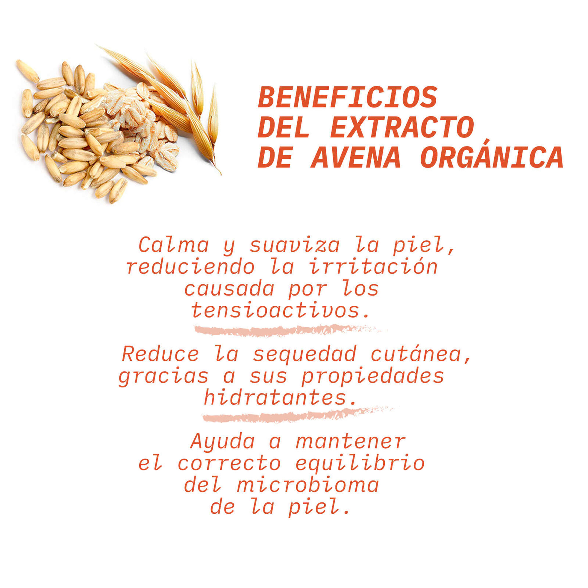 Com extrato de aveia biológico para hidratar, acalmar e suavizar a pele e manter o equilíbrio do microbioma cutâneo.