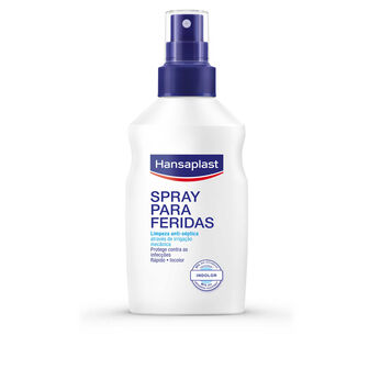Spray para a limpeza de feridas, que protege eficazmente contra infeções.