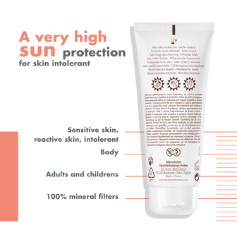 O Leite Mineral SPF 50+ oferece uma proteção solar muito elevada adaptada à pele intolerante a filtros químicos e perfumes, bem como à pele delicada de adultos e crianças.