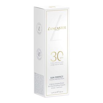 A fórmula evoluída do Sun Perfect Sun Illuminating Cream SPF30 apresenta a avançada tecnologia Full Light exclusiva da Lancaster, que atua contra 100% do espectro solar*, juntamente com a tecnologia antienvelhecimento, sistema de reparação solar de origem natural e complexo de aumento de luminosidade.