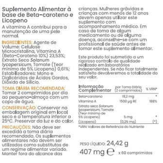 O Suplemento Alimentar Manutenção da Pele Normal é um suplemento alimentar com Beta-caroteno, fonte natural de Vitamina A, e Licopeno.