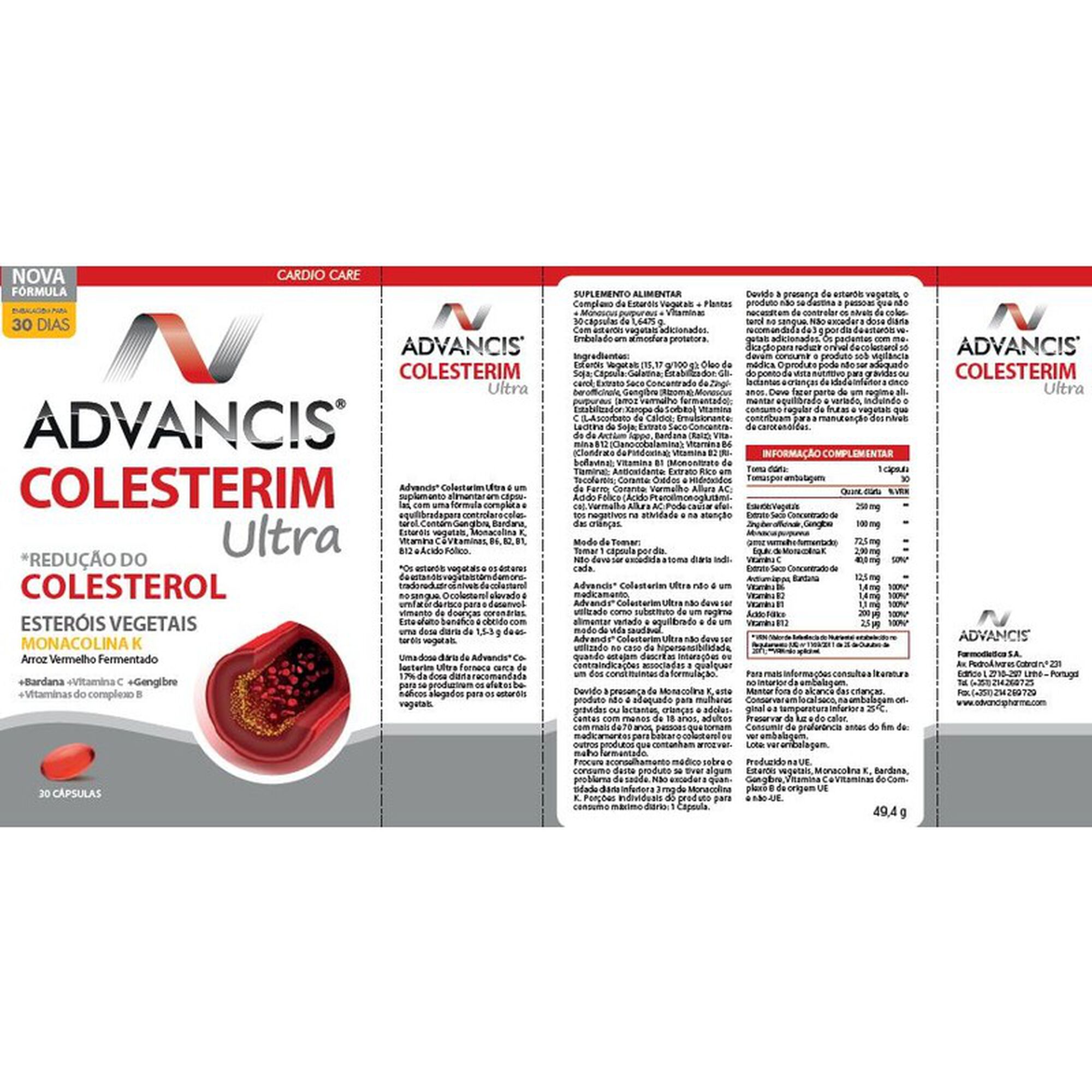 ADVANCIS® COLESTERIM ULTRA é um suplemento alimentar em cápsulas, com uma fórmula completa e equilibrada para controlar o colesterol.