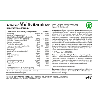 Ácido L-ascórbico; levedura enriquecida com crómio (ChromoPrecise®); agente de volume: celulose microcristalina; óxido de magnésio, acetato de DL-alfa-tocoferilo, succinato ácido de d-α-tocoferilo, gluconato de zinco, levedura enriquecida com selénio (SelenoPrecise®); antiaglomerante: carboximetilcelulose de sódio reticulada; gluconato de manganês; agente de endurecimento: dióxido de silício; nicotinamida; d-pantotenato de cálcio, gluconato de cobre, acetato de retinol; revestumento: hidroxipropilmetilcelulose; cloridrato de piridoxina, cianocobalamina, antiaglomerante: sais de magnésio de ácidos gordos; riboflavina, cloridrato de tiamina; revestimento: zeína; colecalciferol, ácido fólico (Ácido pteroilmonoglutâmico), d-biotina.