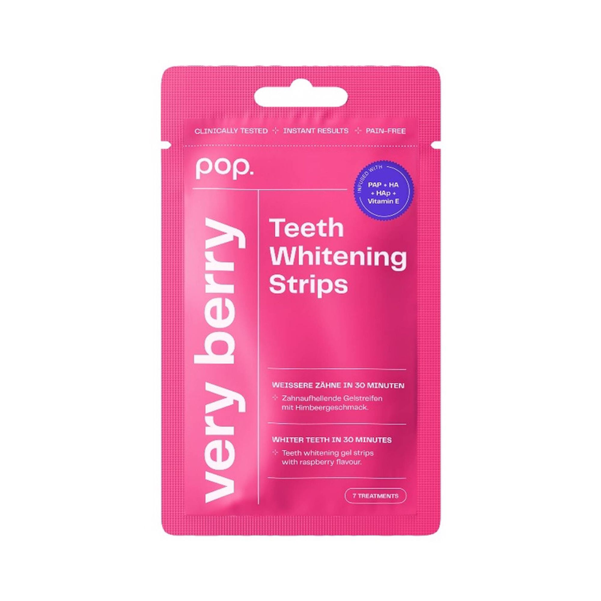 A fórmula patenteada da Smilepen nas tiras Pop para branqueamento dentário também contém ingredientes que fortalecem e nutrem o esmalte dentário e as gengivas.