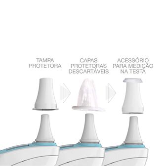 NOTA: Para evitar a propagação de germes, utilize uma nova capa descartável para cada medição. Verificar se a capa da sonda está bem colocada antes de utilizar. Se a capa da sonda estiver danificada, deitar fora e colocar imediatamente uma nova.