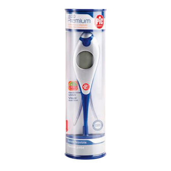Termómetro digital com sonda fléxivel, ecrã grande. Alarme visual febre (verde/vermelho). Dispositivo Médico.