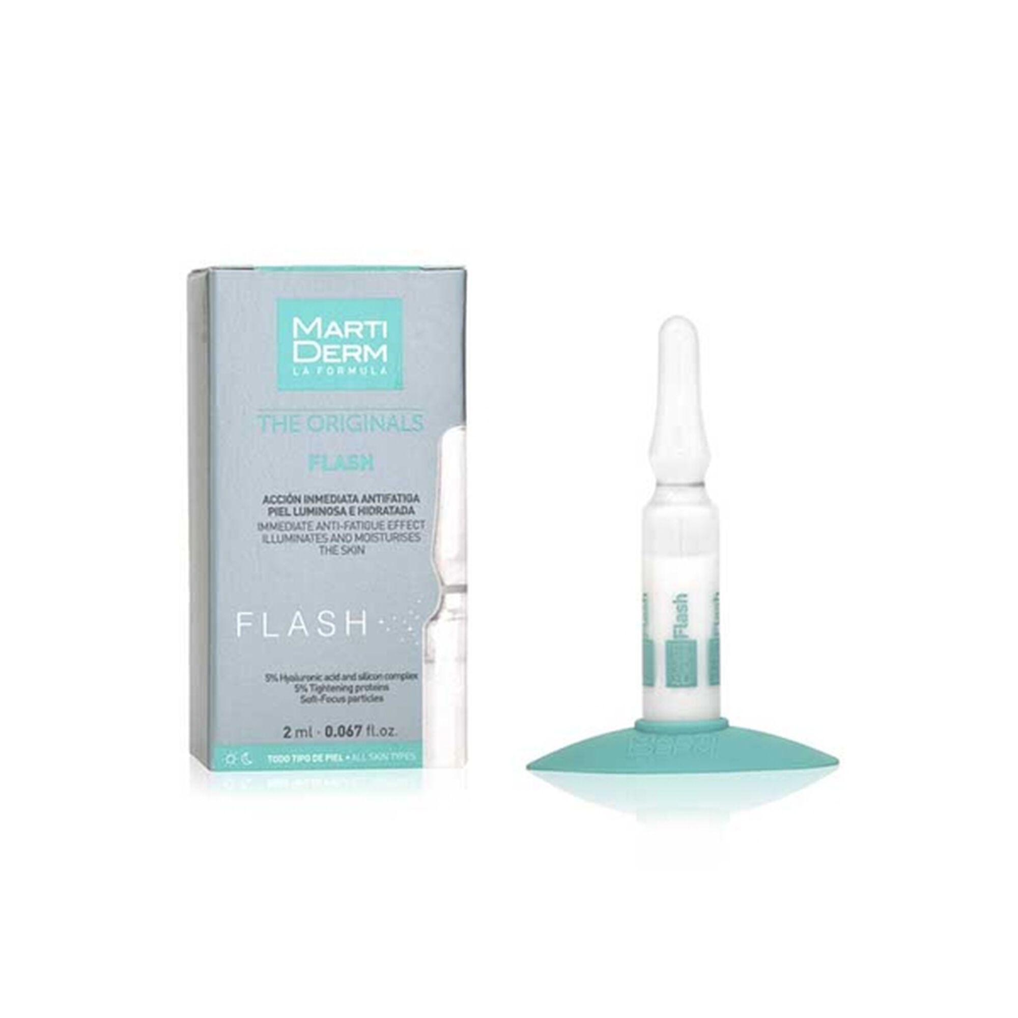 A Ampola Anti fadiga Flash, da MartiDerm apresenta uma ação imediata que esconde rugas e manchas, para um brilho instantâneo da pele.